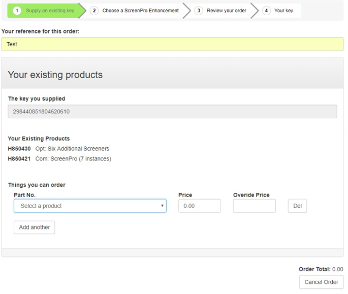 Note: This option is only available to those persons authorized to place orders. You will need a Protection Key ID to use this feature. To continue enter a reference for this order and your Protection Key ID, and then click Next.
