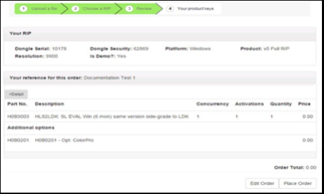 Figure 10.11 Your Product Key and order summary The page includes a link to a CSV file which you can download and includes details of your deliverables. The displayed Product Key represents the LDK license you have moved to. The RIP serial number is preserved and displayed along with any options bundled with your chosen RIP and any options you subsequently added. When you activate this key, you can confirm that the RIP has been correctly moved from HLS to LDK security by reviewing the license using the LDK Tool, included with any LDK capable RIP software. Figure 10.12 Your new LDK license