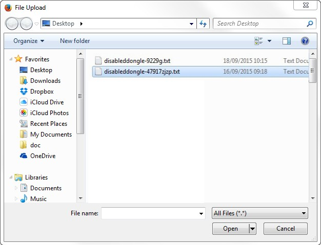 Figure 12.3 Select the .txt file created with the Disabled Dongle Tool