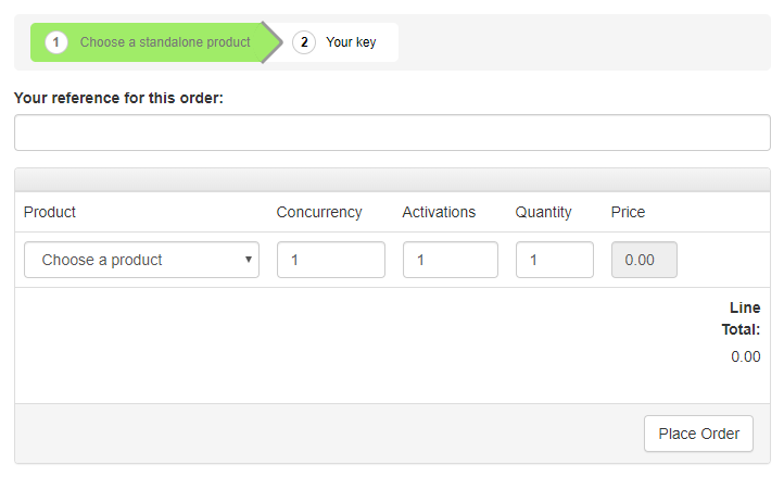 To continue enter your reference for this order and select a product from the drop-down menu.