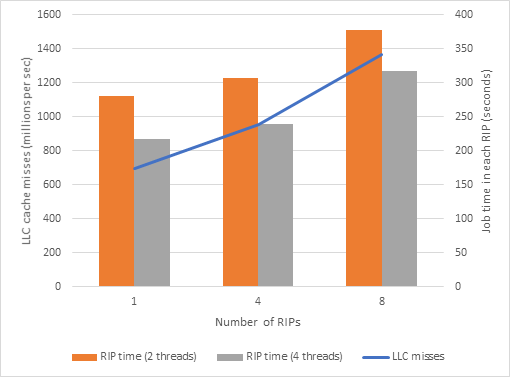 Comparing “LLC Miss Counts” for the three runs we get: LLC Miss count - one RIP ~696 million