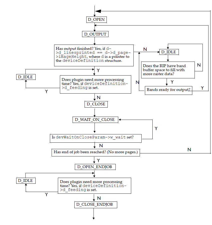 When the RIP has rasterized a page of the job and is ready to output it, it makes the sequence of selector calls shown in Figure: Order of selector calls for page output.