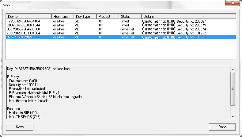 For more information see the documents entitled "LDK Security for Harlequin MultiRIP 10" and "Sentinel LDK Security for the Harlequin Host Renderer".