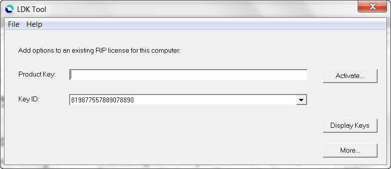 If you have a new key to add new options to your RIP for this computer enter it into the Product Key window and click Activate.