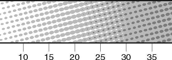 Example 1.d shows the first crossover point—in the upper part can be seen the result without the overlaps; a distinct band can be seen wherein all the pixels are the same value. By contrast, the lower part shows the much smoother looking transition when overlap is added.