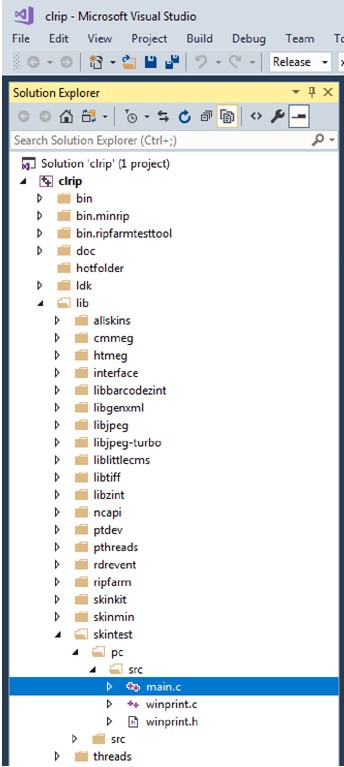 If you highlight clrip in the Solution Explorer, and then Show All Files in the top menu bar of Solution Explorer, then click clrip, it shows you the directory structure of the project, as shown in the following screen capture: