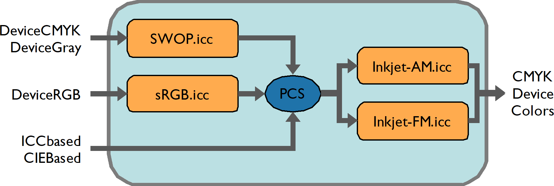 The object-based model of the RIP’s color management is described fully in (v13) Object-based color management.