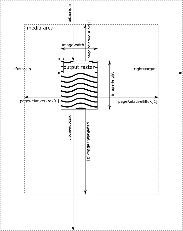 This bounding box is the device space (x1 , y1 , x2 , y2 ) offsets from the raster provided to the full-page area. If the raster provided takes the entire PageSize , then the offsets are (0 ,0 ,0 ,0 ). Since the tiles are restricted to the page size, the first (x1 , y1) offsets are either zero or negative, and the (x2 , y2 ) offsets are zero or positive.