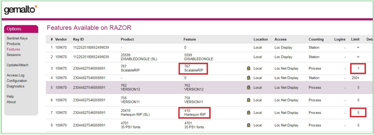 To check how many RIP licenses you have you can use the "Sentinel Admin Control Center" on the machine where your LDK server is running. For example, connect to: