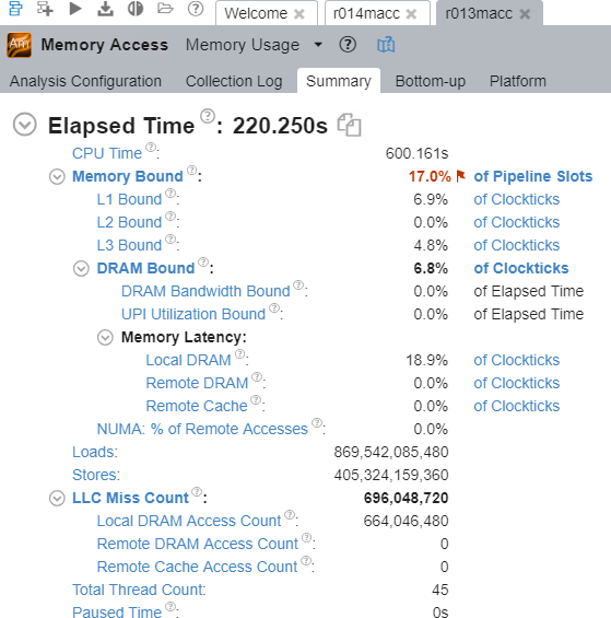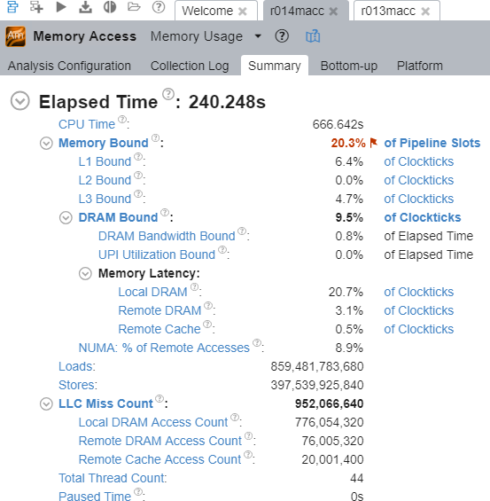Figure: VTune memory access analysis: One RIP - band height 32, four render threads