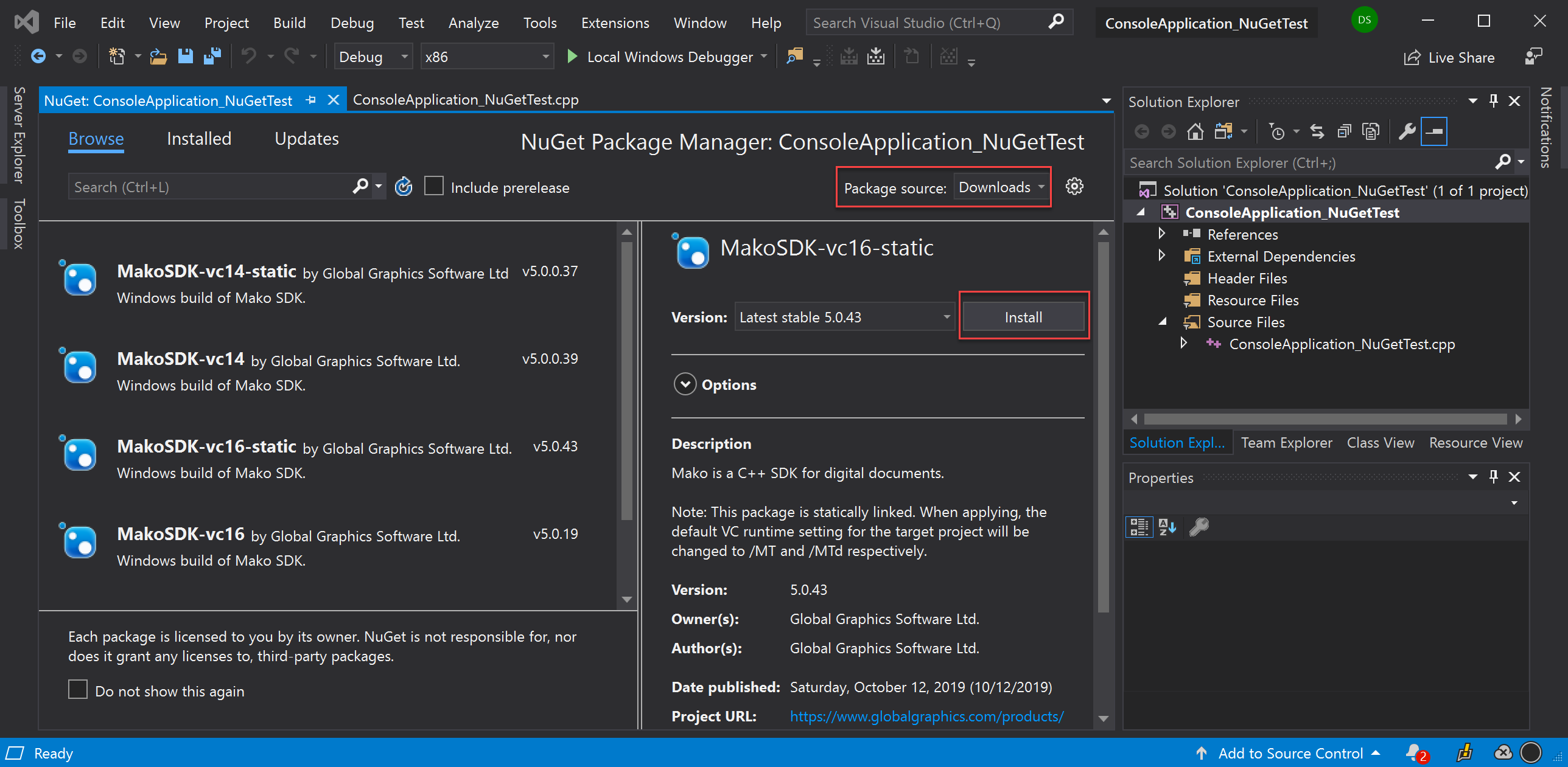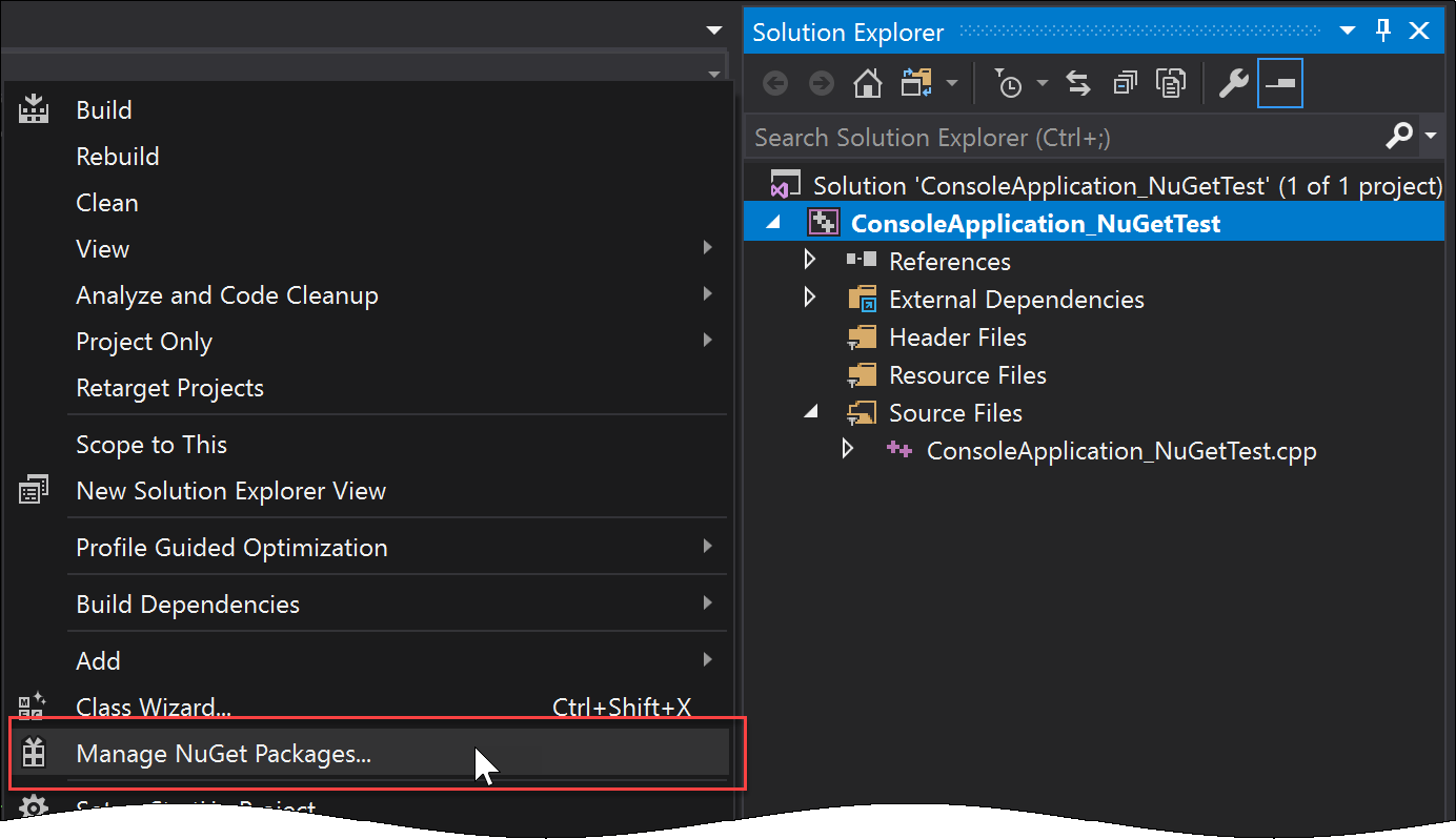 Creating a .NET C++ Console Application and Loading NuGet Packages in Visual Studio