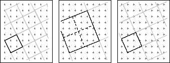 This knight's move is exactly the same as that used when rendering with threshold tiles derived from rational or supercell halftones, as well as type 16 PostScript language threshold arrays. The difference is that this time the knight's move is not an integral number of pixels. Instead the length and height of the move are just the projections of the edge of the halftone cell onto