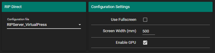The RIP Server configuration defines the number of Harlequin RIPs to use and their associated PostScript configuration, along with settings for ScreenPro Direct.