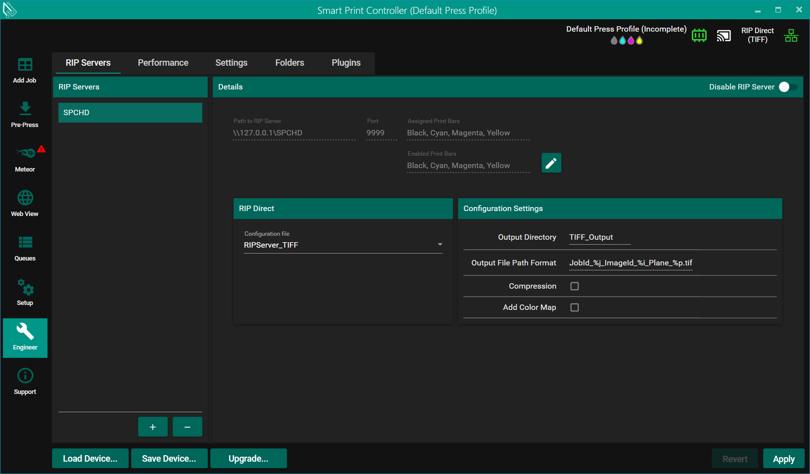 - Output Directory specifies a subfolder within the shared RIP Server folder for the TIFF files to be written.