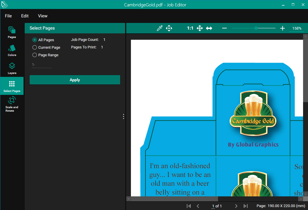 - Current Page prints only the page that the Job Editor is displaying. In the screenshot above, it would print page 1 only.