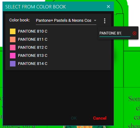 Select a specific ink from a swatch library using search option.