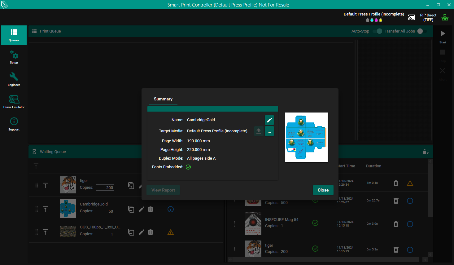If a suitable ICC output profile is present for the active Media, it is used in the Job Editor.