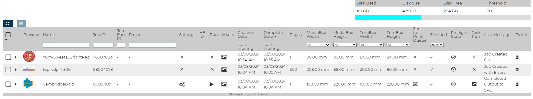 This is the same as the live queue EXCEPT that this displays every job in the database.