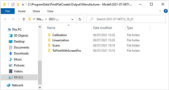Once the calibration and linearization packages are generated, the folder containing them will automatically open.
